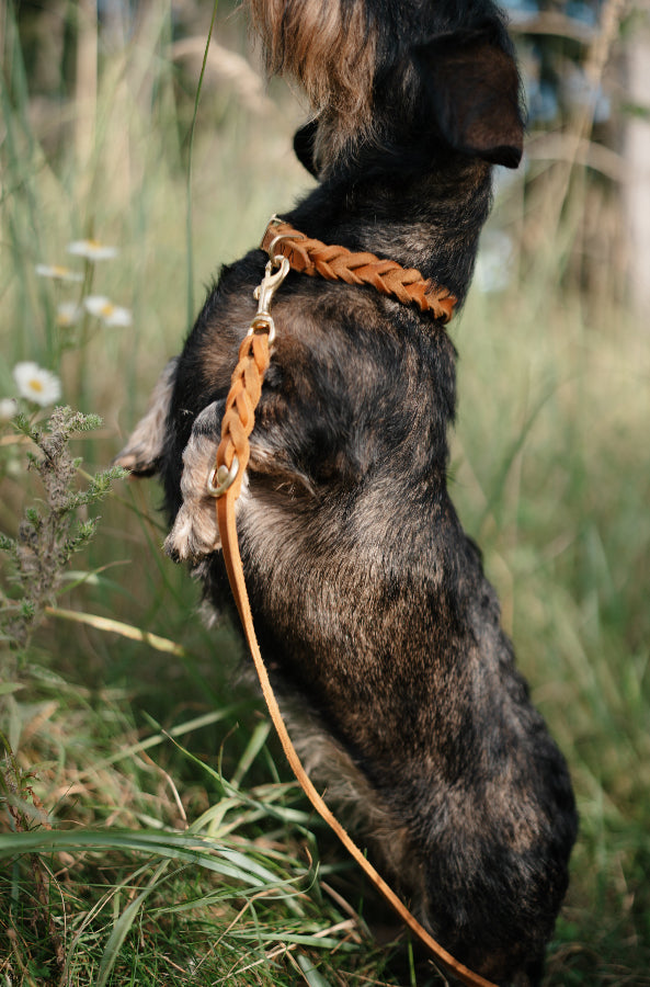The "Mini" leash is tailored precisely to the needs of your small dog: thin leather and small snap hooks make this leash extra light and delicate for your mini! For leashes for large dogs you look best here past.