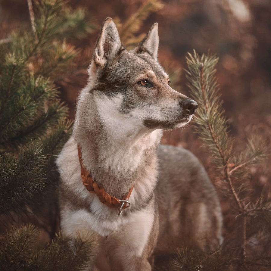 The retriever collar "Oh, Dear!" is made of wonderfully soft and robust greased leather. The braided detail turns the classic dog collar into a collar with that certain something. The collar is pulled over the dog's head and thus enables quick and easy and slip out.